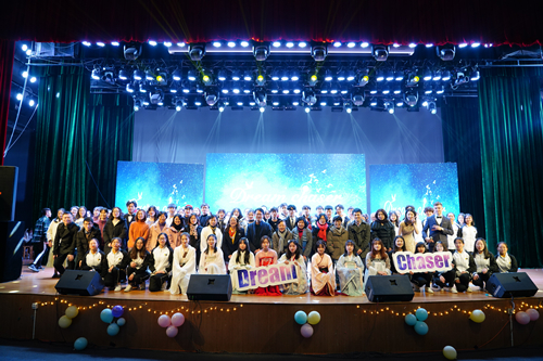 2019年12月1日晚,外国语学院/里番动漫 “Dream Chaser”双语迎新晚会在安吉校区大学生活动中心举行。学院领导班子成员、系主任、外籍教师代表、班主任和辅导员老师出席本次晚会,全院师生共聚一堂,赏青春展风采,迎学院新气象。
