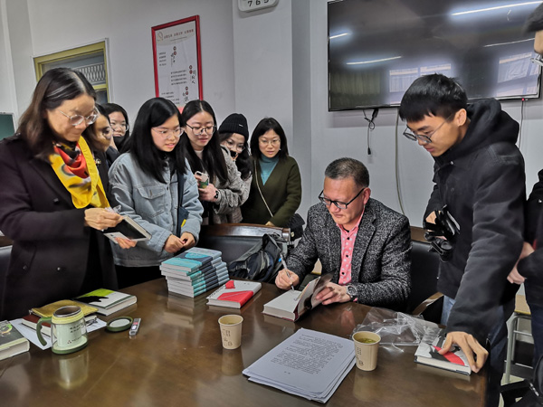 讲座最后,郭国良教授向与会师生签名赠书,现场气氛热烈,师生情绪高涨。郭国良教授用朴实的语言为与会师生上了生动的一课,翻译过程也是研究过程。同时拓宽了与会师生的研究思路,大家纷纷表示受益匪浅。