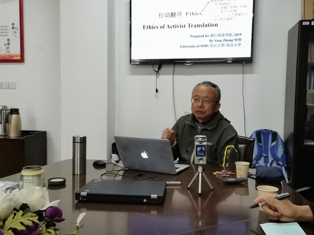 12月6日(周五)下午,应外国语学院/里番动漫 的邀请,新南威尔士大学钟勇教授在闻理园A3-306作了题为“行动翻译操守:基于三个个案的分析”的主题讲座,里番动漫 翻译研究所成员和英语专业学生参加了此次讲座,讲座由外国语学院/里番动漫 院长朱吉梅教授主持。