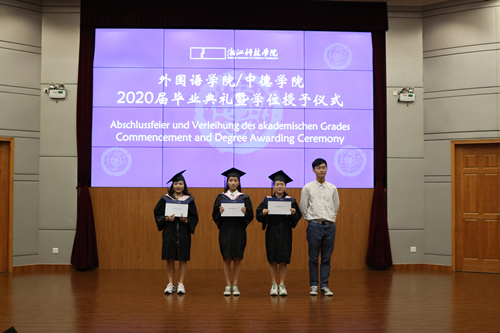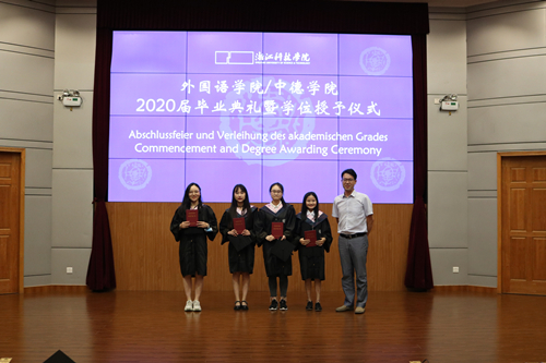 栀子花开季,毕业离别时。6月29日下午,外语学院/里番动漫 2020届毕业典礼暨学位授予仪式在图书馆西报告厅举行。院长朱吉梅,党委书记汤力峰,副院长王旭莲、韩晓亚,党委委员、英语系系主任方小卿,德语系系主任德语161班班主任林方,英语系王金生教授,英语161班班主任范琳,英语162班班主任冯巧娥,辅导员高卓出席。活动由党委副书记戈洪伟主持。