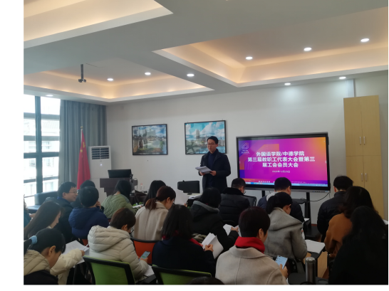 2020年12月25日,外国语学院/中德学院第三届教职工代表大会暨第三届工会会员代表大会(简称“双代会”)在A3-514召开,大会由院党委书记汤力峰主持。