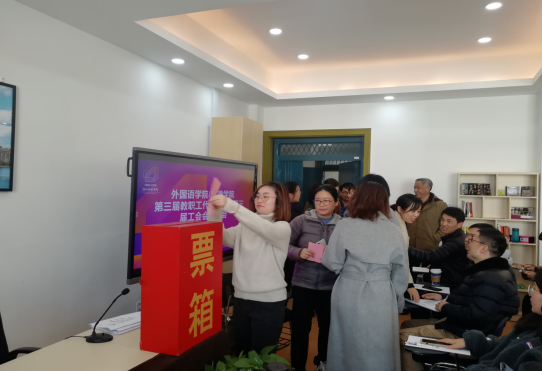 会议的最后议程是外国语学院/里番动漫 第三届分工会委员会选举投票。投票过程严谨公正,监、计票人认真履责,切实保障了投票结果真实有效。最后由院党委书记汤力峰宣布投票结果: 7位候选人得票数超过应到会人数的二分之一以上,选举有效,顺利当选为第三届分工会委员。