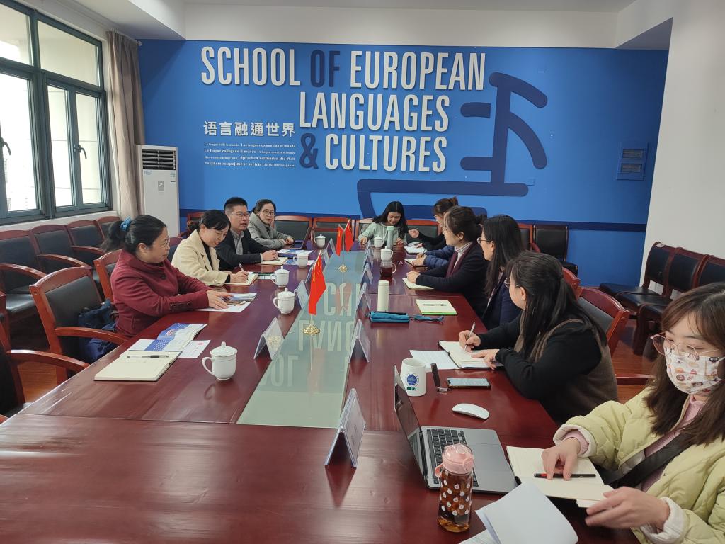 12.8日下午,学院院长韩晓亚、院党委书记阮小波、副院长黄扬、副书记茹潇潇、办公室主任黄祥岳一行前往浙江外国语学院西方语言文化学院调研,西语学院党总支书记毕莹等学院班子成员表示了热烈欢迎。
