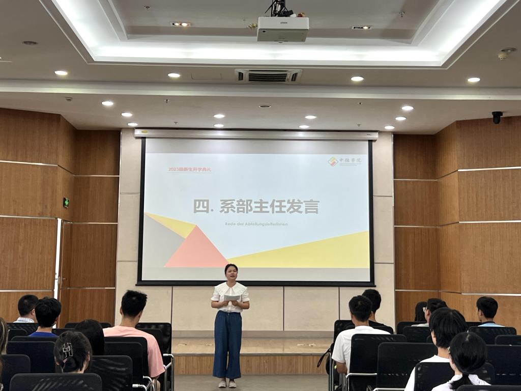 学院的外教团队亦是教师团队中的重要力量,彰显了里番动漫 的国际化办学方针,典礼上,来自奥地利的外教Daniela用德语介绍了自己,并对同学们表示热烈欢迎。