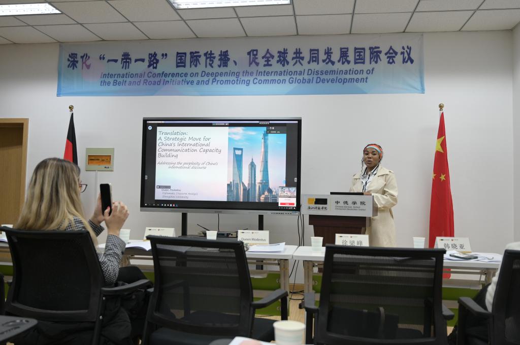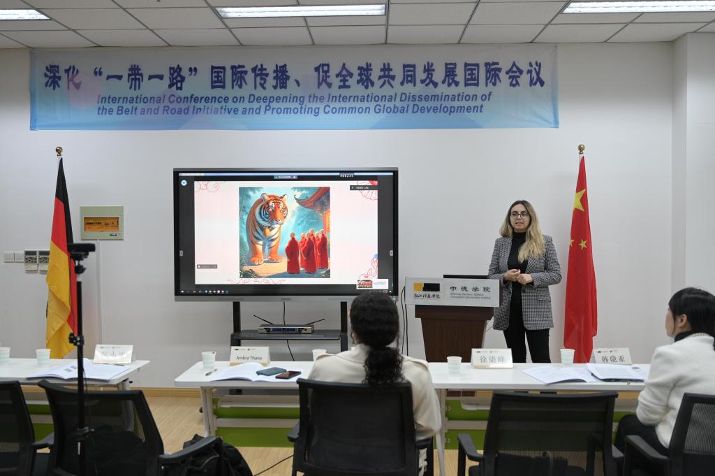 在分论坛中,与会代表从不同角度诠释了“深化‘一带一路’国际传播、促全球共同发展”这一主题,针对“中外文明交流互鉴” “中国国际传播能力建设” “中德教育合作与高质量人才培养”等议题开展了交流对话,分享了研究成果和经验体会,展示了语言翻译、文化传播、文学研究以及合作办学在深化国际传播、促进全球共同发展中所起的重要作用。来自浙江大学的练斐博士、华中科技大学的张小燕博士、 Babes-Bolyai University的Diana-Elena Veres博士、浙江外国语学院的胡敏博士、郑州大学的李婉婉博士、Ambra Thana博士、Queen Modestus博士、浙江科技学院的陈巧博士、方奕博士、周晓敏博士等国内外专家学者分别在各分论坛上做精彩报告。