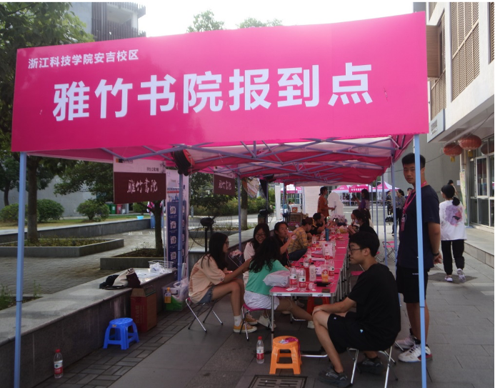 早晨七点半,各岗位的志愿者就已经准备就绪,准备迎接21级新生。志愿者们按照事先培训好的流程,在各自的岗位上井然有序地工作,以最饱满的状态向新生提供报道手续办理、行李搬运和学院情况介绍等志愿服务。每栋宿舍楼下都安排了一系列的报道点,包括但不仅限于水卡、空调、网络等项目,一条龙服务高效便捷,方便新生顺利入住宿舍。