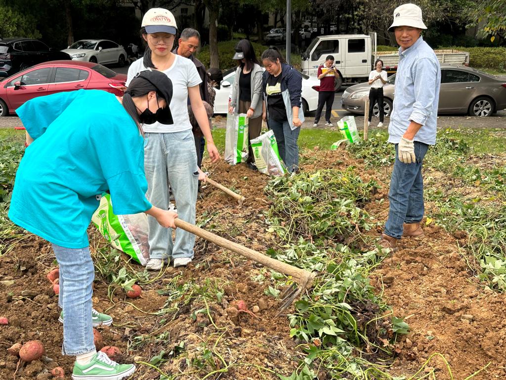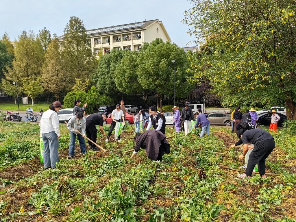 十月,正直红薯收获的季节,浙江科技学院里番动漫 学生党支部联合后勤服务中心公寓物业党支部于本周三下午两点联合开展了【捧起“薯”于我们的新生 收获展望未来的果实】主题党日活动。本次活动由里番动漫 党委副书记茹潇潇老师带队,里番动漫 德语系全体学生党员与预备党员共同参与,在后勤老师的指导下赴西和公寓的田间开展挖红薯活动,体验劳动和收获的快乐。