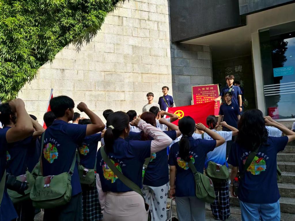 全体学员身着整齐的服装,心怀敬意,一步步踏上井冈山革命烈士陵园的台阶。在巍峨的纪念碑前,学员们紧握右拳,目光坚定,重温入团誓词。铿锵有力的誓言在山风中回荡,仿佛与历史对话,向英雄致敬。这一刻,理想与信仰跨越时空,深深扎根在每一位青年的心中。