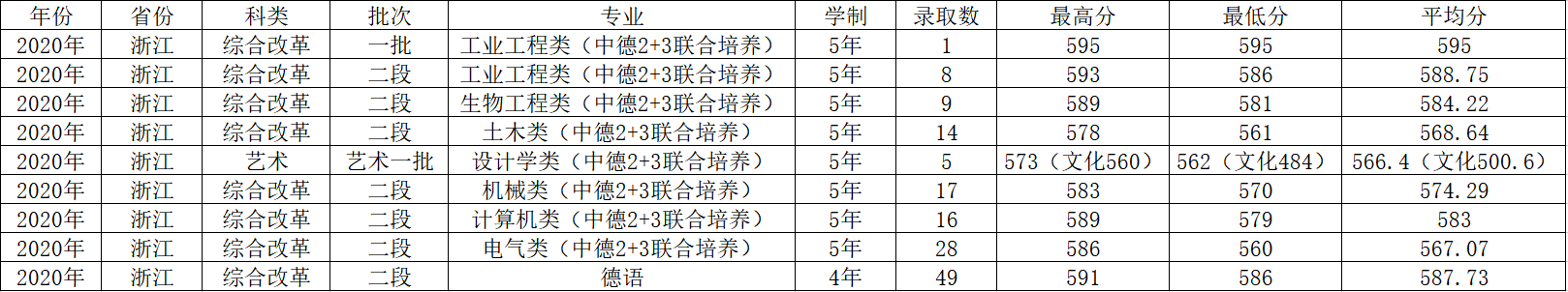 2020年各专业录取统计(浙江省)
